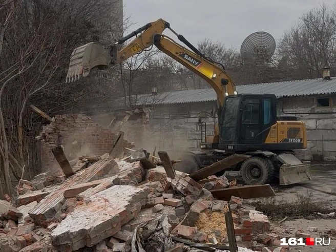 Экскаватор сносит конюшни на территории Ростовского ипподрома
